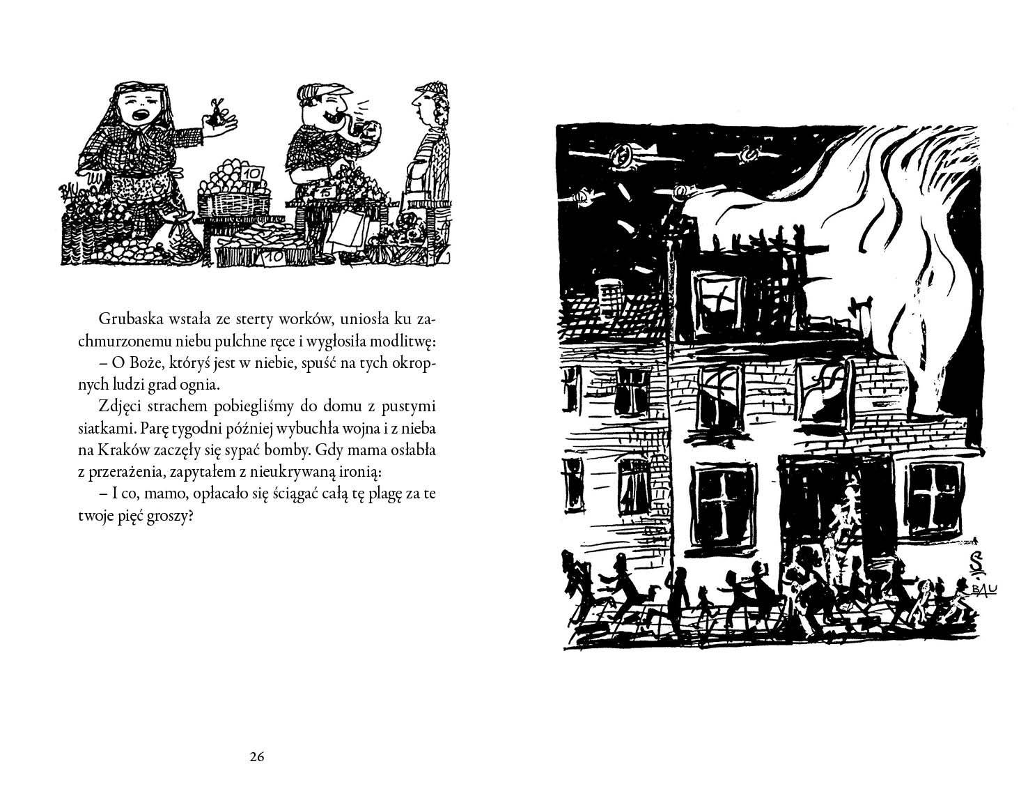 Józef Bau z zadziwiającym dowcipem i ironią dzieli się doświadczeniami strasznych przeżyć wojennych, a jego genialne rysunki stanowią idealny kontrapunkt dla tekstu. Opowieść artysty to hymn ku czci jego żony Rebeki. Łączyło ich wzajemne oddanie, z którego czerpali humor i siłę, ostatecznie zaś odnieśli triumf w obliczu zła absolutnego.