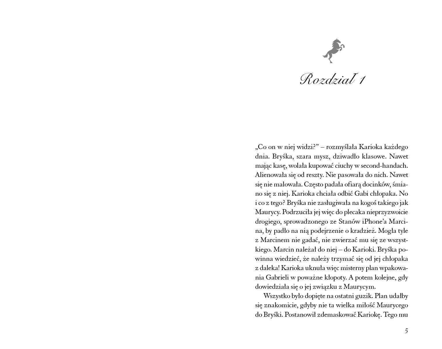 Marzenie Gabi o stworzeniu Akademii Jeździeckiej powoli staje się rzeczywistością. Na razie akademią kieruje jej tata, ale dziewczyna pomaga z wielkim zaangażowaniem. Dzięki temu zawiera nowe znajomości – między innymi z Kaliną, której hipoterapia ma pomóc wyrwać się ze szpon bezwzględnej choroby, i z grupą młodych ekologów. Gdy wszystko zdaje się zmierzać w dobrą stronę, ktoś zostawia w pokoju Gabrysi tajemnicze, symboliczne czarne róże, a Pola, trenerka hipoterapii, zaczyna się za bardzo spoufalać z Maurycym… Pozbawiona skrupułów Karioka również nie powiedziała jeszcze ostatniego słowa.